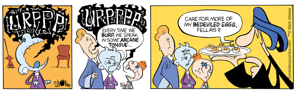 I love it! More food gags, please! I’ve always wondered just what ZB and gang like to eat! “Bedeviled eggs” — ha ha!